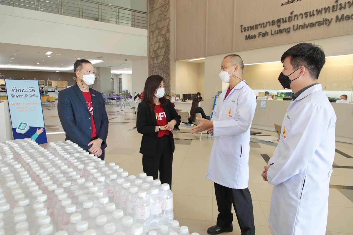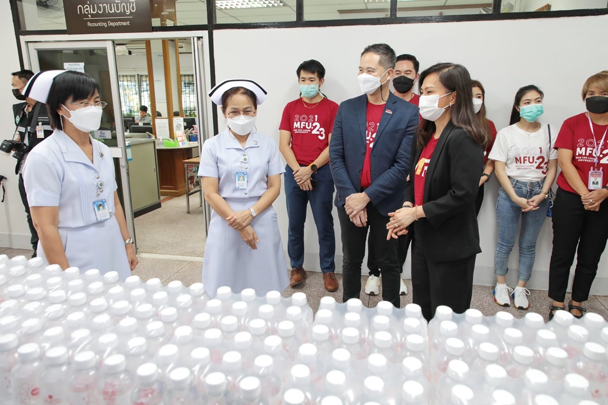 มหาวิทยาลัยแม่ฟ้าหลวง (มฟล.) โดยสำนักงานจัดการทรัพย์สินและรายได้ นำโดย ดร.พรรณรวี พรหมนารท รองอธิการบดี และ ดร.พฤทธิ์ พุฒจร ผู้ช่วยอธิการบดี พร้อมตัวแทนอาจารย์และพนักงาน นำน้ำดื่มจากโครงการส่งน้ำจากใจให้ด่านหน้า สำหรับทีมหมอ พยาบาล และเจ้าหน้าที่โรงพยาบาลสู้ภัยโควิด ที่สำนักงานจัดการทรัพย์สินและรายได้ ได้ริเริ่มโครงการด้วยการเปิดรับบริจาคน้ำดื่มลานดาวเพื่อแสดงความขอบคุณและส่งกำลังใจให้กับบุคลากรทางการแพทย์ในโรงพยาบาล รวม 3 แห่ง คือ โรงพยาบาลแม่จัน โรงพยาบาลเชียงรายประชานุเคราะห์ และโรงพยาบาลศูนย์การแพทย์มหาวิทยาลัยแม่ฟ้าหลวง เมื่อวันที่ 10 กันยายน 2564
