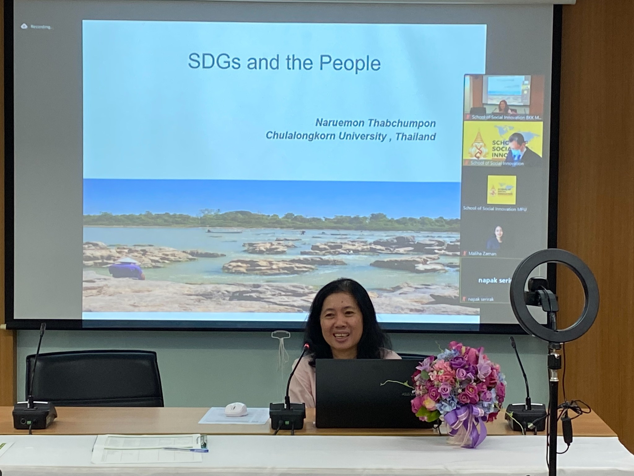 สำนักวิชานวัตกรรมสังคม (สำนักงานกรุงเทพฯ) อาคารปัญจภูมิ กรุงเทพฯ ได้จัดงานเสวนาวิชาการในด้านการพัฒนาระหว่างประเทศ ในหัวข้อ A Hybrid Panel "Paradigm Shift in International Development towards SDGs and the 2030 New Global Agenda (5Ps - People, Planet, Prosperity, Partnership, Peace)” ร่วมกับ Heinrich Böll Stiftung (สำนักงานเอเชียตะวันออกเฉียงใต้) สหพันธ์รัฐเยอรมนี เมื่อวันศุกร์ที่ 17 มิถุนายน พ.ศ. 2565 โดยมีนักวิชาการด้านรัฐศาสตร์ ความสัมพันธ์ระหว่างประเทศ ภูมิศาสาตร์ สิ่งแวดล้อม เศรษฐศาสตร์และสันติภาพ จากจุฬาลงกรณ์มหาวิทยาลัย มหาวิทยาลัยธรรมศาสตร์ มหาวิทยาลัยเชียงใหม่ Gadjah Mada Univeristy ประเทศอินโดนีเซีย และ Asian Univeristy for Women ประเทศบังคลาเทศ เข้าร่วมการเสวนา ทั้งนี้ อาจารย์ ดร.ฉลองรัฐ เจริญศรี ผู้ช่วยคณบดีสำนักวิชานวัตกรรมสังคม ได้กล่าวเปิดการเสวนา โดยมีอาจารย์ ดร.จารุวรรณ หัตถผสุ เป็นผู้ดำเนินรายการ