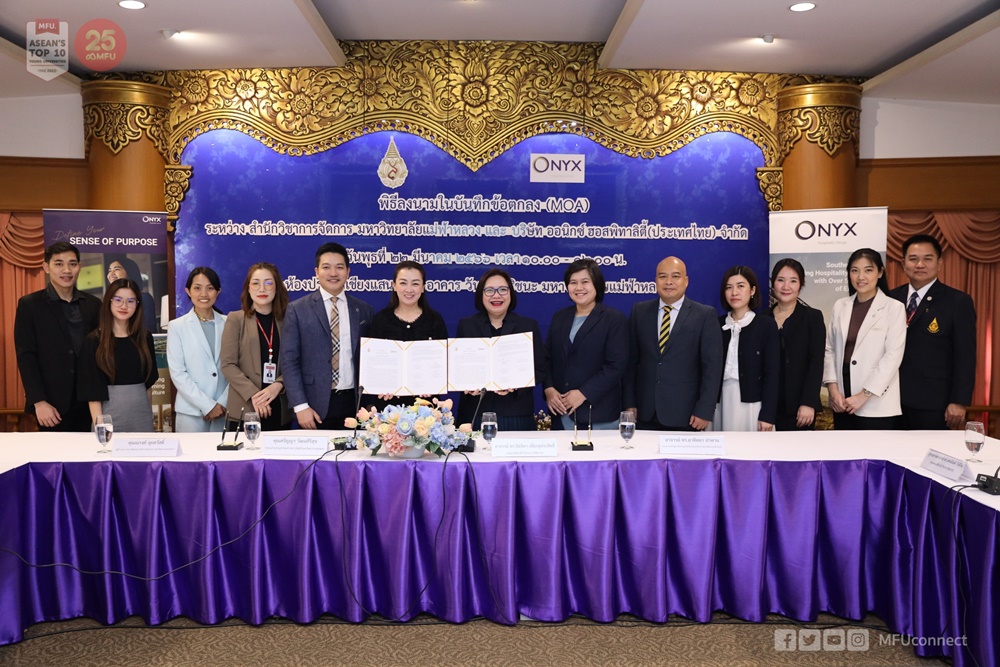 ดร.ปิยธิดา เพียรลุประสิทธิ์ คณบดีสำนักวิชาการจัดการ มหาวิทยาลัยแม่ฟ้าหลวง (มฟล.) และ คุณสรัญญา วัฒนศิริสุข รองประธานกรรมการอาวุโสฝ่ายทรัพยากรบุคคล บริษัท ออนิกซ์ ฮอสพิทาลิตี้ (ประเทศไทย) จำกัด ซึ่งดำเนินธุรกิจด้านโรงแรม เซอร์วิส อพาร์ตเมนต์ และสปาชั้นนำในภูมิภาคเอเชียตะวันออกเฉียงใต้ ที่แตกต่างและโดดเด่นทางด้านการบริการ มีสถานประกอบการในเครือ อมารี โอโซ่ ชามา และ บรีซสปา ครอบคลุมทั้งในประเทศไทยและต่างประเทศ ปัจจุบันมีโรงแรมที่เปิดให้บริการกว่า 50 แห่ง ใน 8 ประเทศ ได้ร่วมลงนามในบันทึกข้อตกลง MOA เพื่อสนับสนุนการเรียนการสอน เพื่อแลกเปลี่ยนข้อมูลความรู้ระหว่างกัน และทำการสนับสนุนให้เกิดการฝึกงานค้านธุรกิจการโรงแรม การบริการ ณ สถานประกอบการโรงแรมในเครือบริษัทในแบบการฝึกงานแบบปกติและในโครงการฝึกงานแบบเอกสิทธ์พิเศษ เมื่อวันพุธที่ 22 มีนาคม 2566 เวลา 10.00 – 12.00 น. ที่ห้องประชุมเชียงแสน อาคารวันชัย ศิริชนะ มหาวิทยาลัยแม่ฟ้าหลวง จ.เชียงราย ท่ามกลางคณะผู้บริหารจากทั้งสองฝ่าย