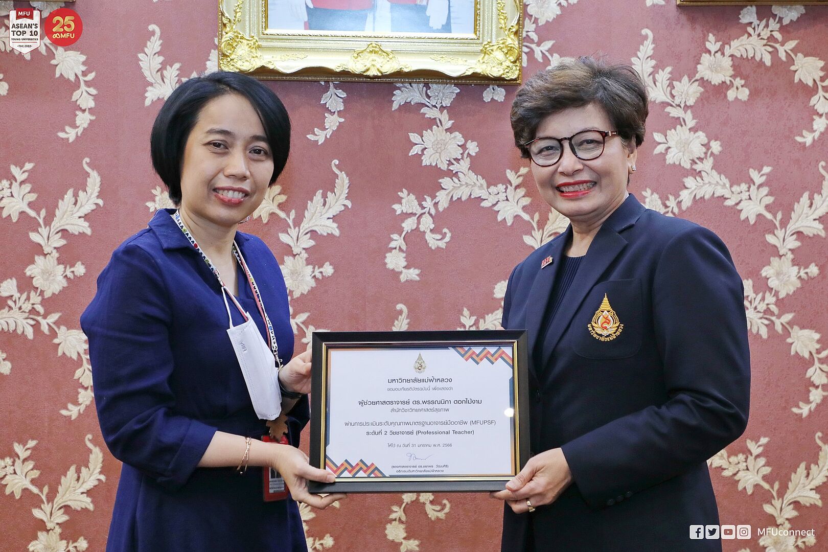 อธิการบดีมอบเกียรติบัตรอาจารย์ผู้ผ่าน MFUPSF ระดับที่ 2 วิชชาจารย์ (Professional Teacher) จำนวน 2 ท่าน