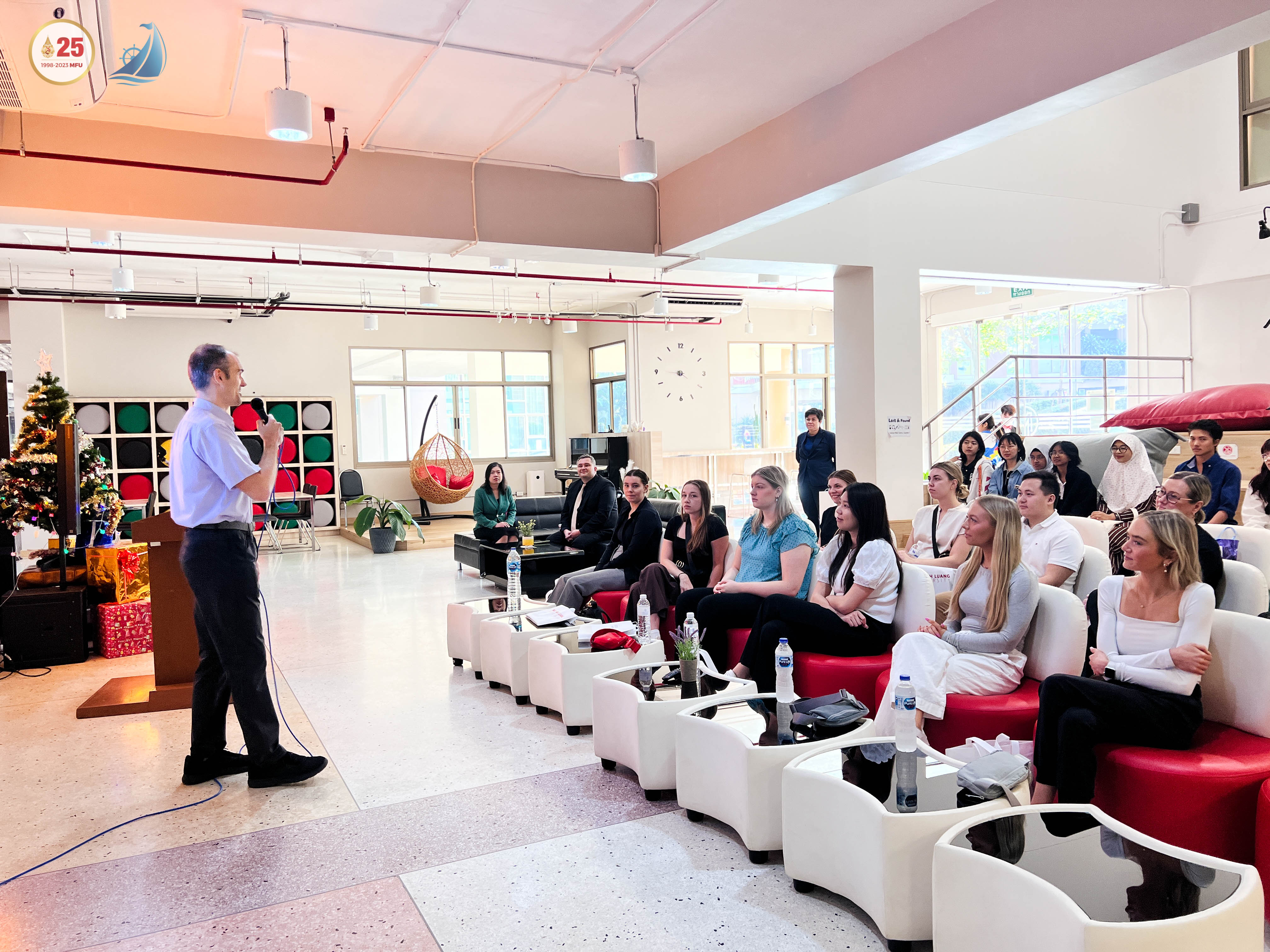 สำนักวิชาการจัดการ มหาวิทยาลัยแม่ฟ้าหลวง จัดโครงการบริการวิชาการ การอบรมหลักสูตรระยะสั้น "Globalization in Thailand" for University of Wisconsin-Eau Claire, USA ระหว่างวันที่ 3 - 19 มกราคม 2567 ณ จังหวัดเชียงราย จังหวัดเชียงใหม่ กรุงเทพมหานคร จังหวัดนครปฐม และจังหวัดภูเก็ต โดยมีพิธีเปิดกิจกรรม ในวันที่ 4 มการคม 2567 กล่าวต้อนรับผู้เข้าร่วมโครงการ โดย อาจารย์ ดร.ชัชชญา ยอดสุวรรณ รองคณบดีสำนักวิชาการจัดการ ณ M4U Center กลุ่มอาคาร M - Square เวลา 09.00 น. ทั้งนี้มีผู้เข้าร่วมโครงการทั้งหมด 30 คน