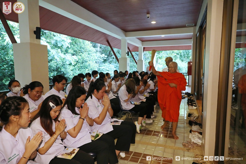 สำนักวิชาการแพทย์บูรณาการ มหาวิทยาลัยแม่ฟ้าหลวง (มฟล.) จัดพิธีทำบุญสำนักวิชาและพิธีไหว้ครูแพทย์แผนไทย ประจำปีการศึกษา 2567 โดยมี อาจารย์ ดร.พญ.สุลัคณา น้อยประเสริฐ คณบดี เป็นประธานในพิธี พร้อมด้วยคณาจารย์ประจำสำนักวิชา เจ้าหน้าที่ ศิษย์เก่า และนักศึกษาสาขาวิชาการแพทย์แผนไทยประยุกต์ เข้าร่วมพิธี เพื่อแสดงความกตัญญูและน้อมรำลึกพระคุณบูรพาจารย์ ที่สั่งสอนและประสิทธิ์ประสาทสรรพวิทยาการ และถือเป็นโอกาสให้นักศึกษาใหม่สาขาวิชาแพทย์แผนไทยประยุกต์ได้มอบตัวเป็นศิษย์ ณ ห้องประชุมวนาสวรรค์ วนาศรม มหาวิทยาลัยแม่ฟ้าหลวง