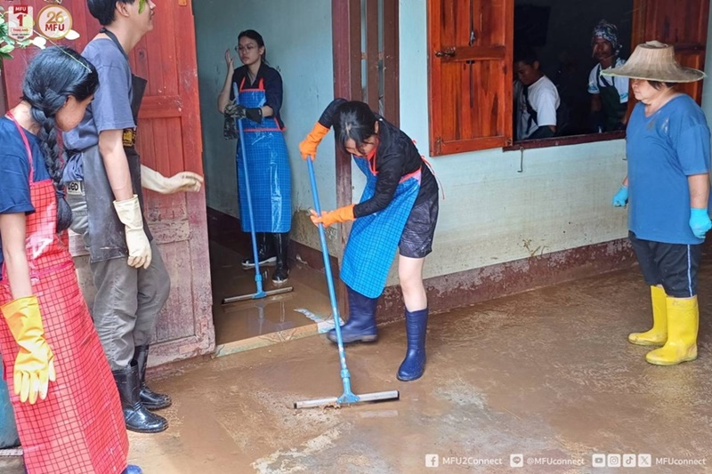 เมิ่อวันอาทิตย์ที่ 1 กันยายน 2567 นักศึกษามหาวิทยาลัยแม่ฟ้าหลวงกว่า 40 คน จากสำนักวิชานวัตกรรมสังคม นำโดย อ.ดร.สืบสกุล กิจนุกร และนักศึกษานานาชาติ โดยการประสานงานจากส่วนพัฒนาความสัมพันธ์ระหว่างประเทศได้ร่วมแรงร่วมใจกับแรงงานเมียนมา 25 คน จากศูนย์ช่วยเหลือแรงงานข้ามชาติ จังหวัดเชียงราย และอาสาสมัครจากมูลนิธิกระจกเงา ในการทำความสะอาดบ้านผู้ประสบภัยน้ำท่วมที่บ้านเวียงใต้ หมู่ 15 ตำบลเวียง อำเภอเทิง จังหวัดเชียงราย