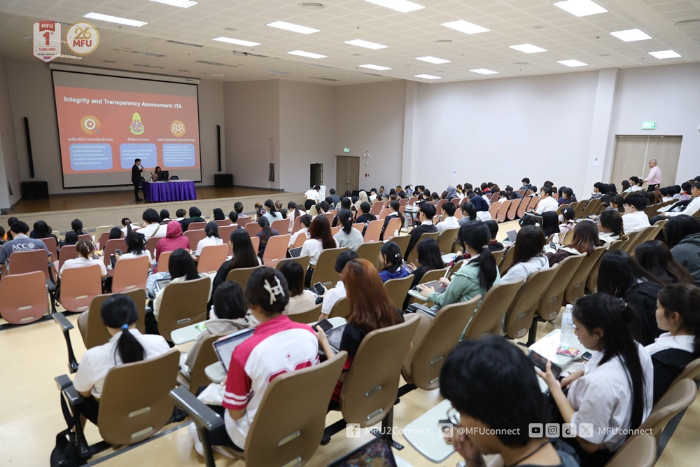 เมื่อวันที่ 11 มีนาคม 2568 ส่วนพัฒนานักศึกษาจัดกิจกรรมประชาสัมพันธ์สร้างการรับรู้ข้อมูลการประเมินคุณธรรมและความโปร่งใสในการดำเนินงานของหน่วยงานภาครัฐ ประจำปีงบประมาณ พ.ศ. 2568 (Integrity and Transparency Assessment: ITA) โดยมี ผศ. ดร.ภาณุพงษ์ ใจวุฒิ รองอธิการบดีมหาวิทยาลัยแม่ฟ้าหลวง เป็นผู้ให้ข้อมูล ณ ห้องประดู่แดง 1 อาคารพลเอกสำเภา ชูศรี (E4) และมีนักศึกษาเข้าร่วมกิจกรรมกว่า 300 คน