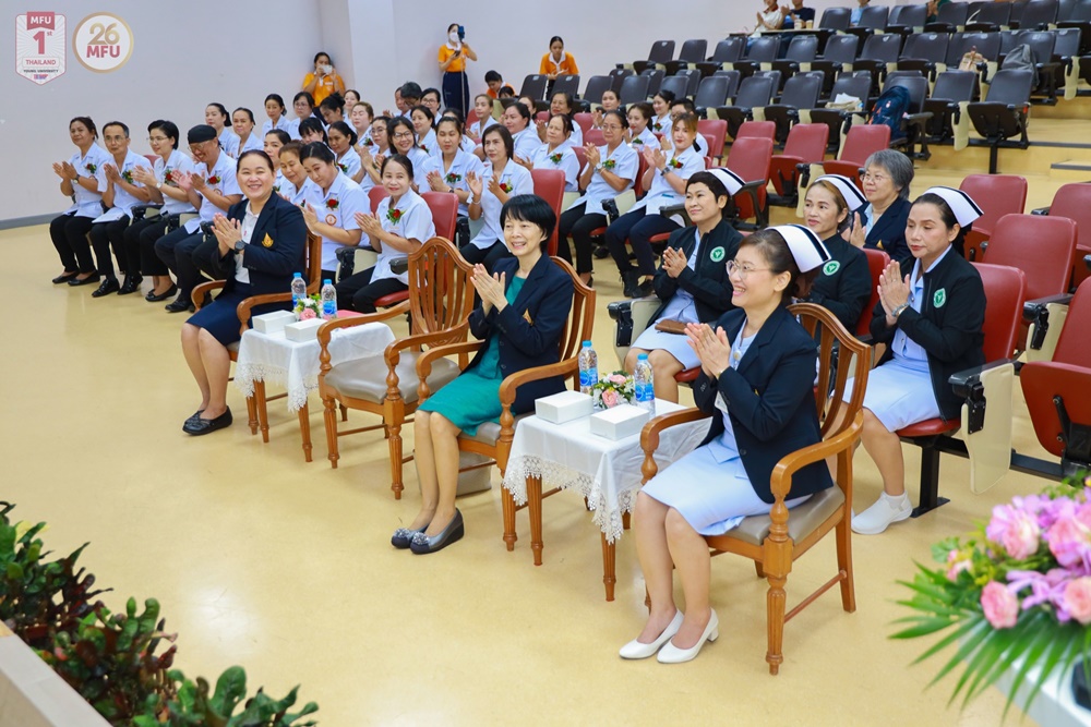 เมื่อวันอาทิตย์ที่ 8 มิถุนายน 2568 สำนักวิชาพยาบาลศาสตร์ มหาวิทยาลัยแม่ฟ้าหลวง ได้จัดพิธีประกาศการสำเร็จการอบรม “หลักสูตรผู้ดูแลผู้สูงอายุ (Care Giver - CG) 420 ชั่วโมง รุ่นที่ 1” ณ ห้อง 811 อาคารพลเอกสำเภา ชูศรี (E4) และบริเวณลานพระราชานุสาวรีย์สมเด็จพระศรีนครินทราบรมราชชนนี โดยมีผู้สำเร็จการอบรมทั้งสิ้นจำนวน 37 ราย