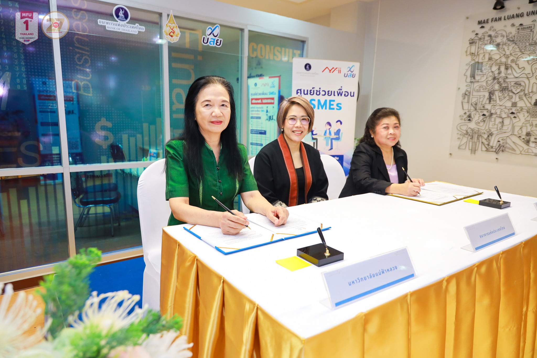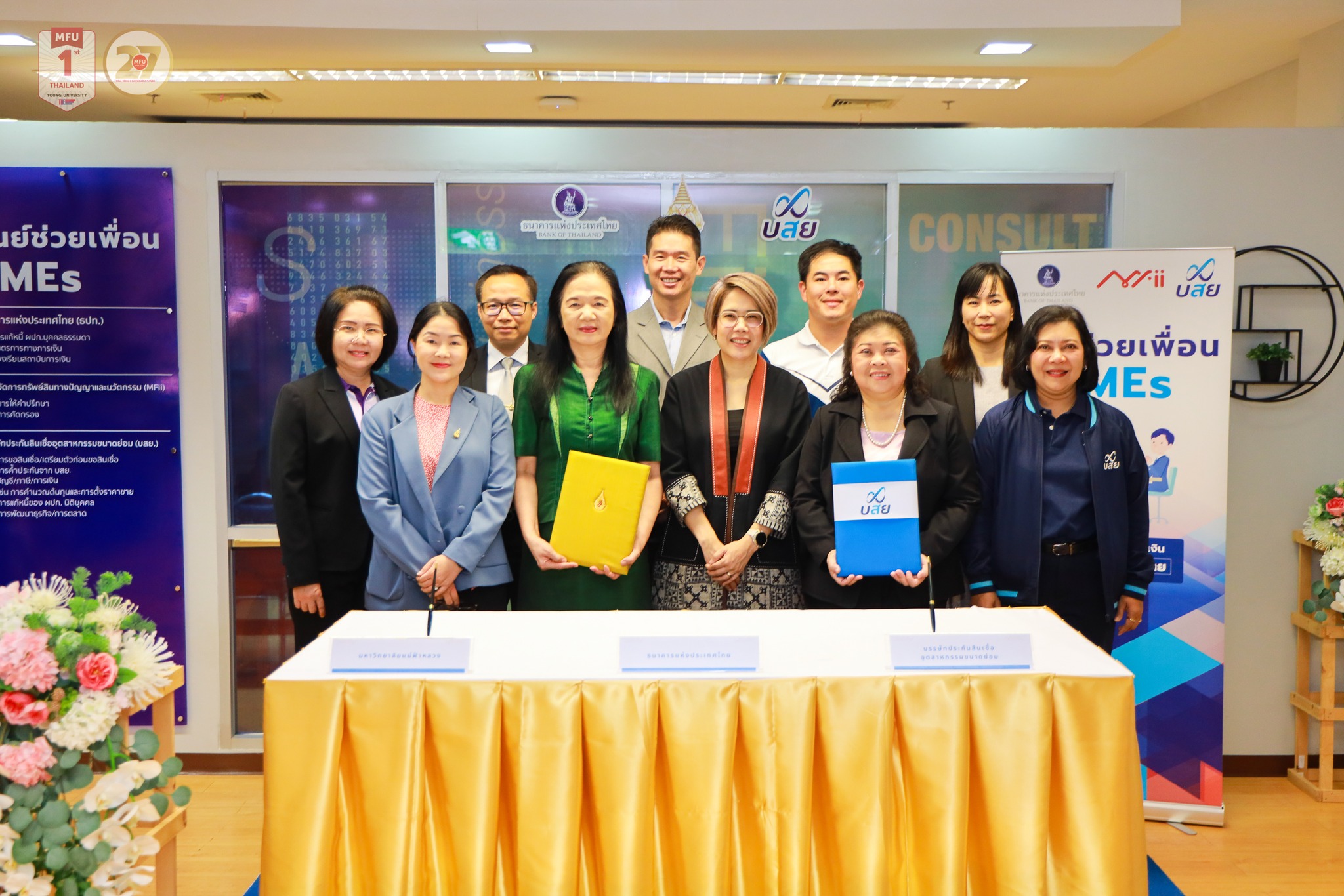 เมื่อวันที่ 16 กรกฎาคม 2568 มหาวิทยาลัยแม่ฟ้าหลวง (มฟล.) โดย ส่วนจัดการทรัพย์สินทางปัญญาและนวัตกรรม ร่วมกับ สำนักวิชาการจัดการ จัดพิธีเปิด “ศูนย์ช่วยเพื่อน SMEs” อย่างเป็นทางการ ซึ่งเกิดจากความร่วมมือระหว่างบรรษัทประกันสินเชื่ออุตสาหกรรมขนาดย่อม (บสย.) กับมหาวิทยาลัยแม่ฟ้าหลวง และ ธนาคารแห่งประเทศไทย สำนักงานภาคเหนือ พร้อมพิธีลงนามบันทึกข้อตกลงความร่วมมือ (MOU) ระหว่าง บรรษัทประกันสินเชื่ออุตสาหกรรมขนาดย่อม (บสย.) และมหาวิทยาลัยแม่ฟ้าหลวง ณ ห้อง MI306 อาคาร M-Square มหาวิทยาลัยแม่ฟ้าหลวง โดยมีผู้บริหาร คณาจารย์ บุคลากร นักศึกษา และแขกผู้มีเกียรติจากหน่วยงานภาคี ได้แก่ คลังจังหวัดเชียงราย อัยการจังหวัดเชียงราย หอการค้าจังหวัดเชียงราย และกลุ่มนักธุรกิจรุ่นใหม่ เชียงราย (YEC Chiang Rai) เข้าร่วมอย่างพร้อมเพรียง