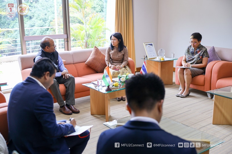 มหาวิทยาลัยแม่ฟ้าหลวง ค้อนรับคณะผู้แทนสถานกงสุลใหญ่อินเดียประจำเชียงใหม่ นำโดยนายประณพ คเณศ กงสุลใหญ่สาธารณรัฐอินเดีย เข้าเยี่ยมคารวะอย่างเป็นทางการ เมื่อวันพุธที่ 16 กรกฎาคม 2568 เวลา 11.00-12.00 น. ณ ห้องรับรอง อาคารวันชัย ศิริชนะ