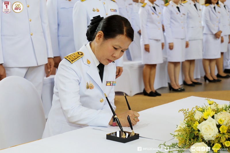 วันนี้ (25 กรกฎาคม 2568) มหาวิทยาลัยแม่ฟ้าหลวง จัดพิธีลงนามถวายพระพรชัยมงคล และพิธีถวายสัตย์ปฏิญาณเพื่อเป็นพนักงานของรัฐที่ดีและพลังของแผ่นดิน เนื่องในโอกาสวันเฉลิมพระชนมพรรษาพระบาทสมเด็จพระเจ้าอยู่หัว 28 กรกฎาคม 2568