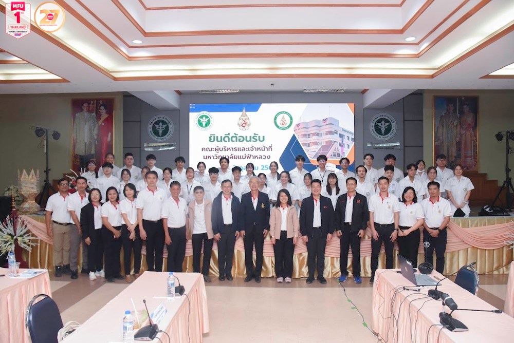 ในโอกาสนี้ คณะผู้บริหารมหาวิทยาลัยแม่ฟ้าหลวงได้ร่วมเยี่ยมชมพื้นที่ก่อสร้างอาคารหอพักสาขาเวียงยองและอาคารศูนย์แพทยศาสตรศึกษาชั้นคลินิก พร้อมรับฟังการนำเสนอข้อมูลด้านแพทยศาสตรศึกษา การเรียนการสอนระดับคลินิก และกิจการนักศึกษา โดยมีการแลกเปลี่ยนข้อคิดเห็นและหารือแนวทางความร่วมมือ เพื่อเสริมสร้างศักยภาพด้านการแพทยศาสตรศึกษาในพื้นที่ให้ก้าวหน้าและมีคุณภาพ
