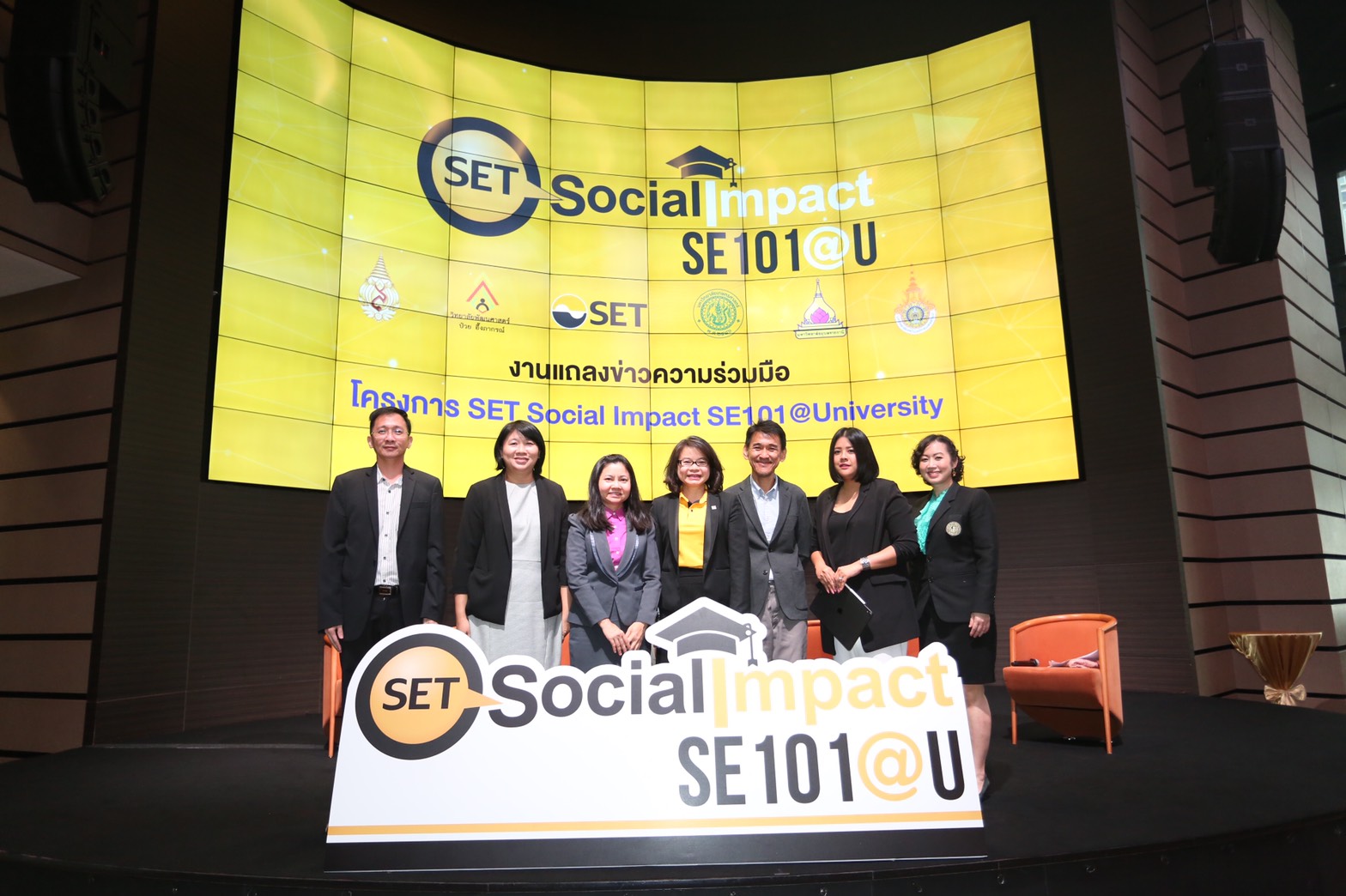 เมื่อวันที่ 7 ตุลาคม 2562 อาจารย์ ดร.ฉัตรฤดี จองสุรียภาส คณบดีสำนักวิชาการจัดการ มหาวิทยาลัยแม่ฟ้าหลวง (มฟล.) เข้าร่วมงานแถลงข่าวความร่วมมือโครงการ “SET Social Impact SE101@University” ณ หอประชุมศุกรีย์ แก้วเจริญ ชั้น 3 อาคาร B ตลาดหลักทรัพย์แห่งประเทศไทย โดยมีมหาวิทยาลัยนำร่อง ได้แก่ มหาวิทยาลัยเกษตรศาสตร์ วิทยาลัยพัฒนศาสตร์ ป๋วย อึ้งภากรณ์ มหาวิทยาลัยธรรมศาสตร์ มหาวิทยาลัยแม่ฟ้าหลวง มหาวิทยาลัยเทคโนโลยีราชมงคลล้านนา 6 วิทยาเขต เชียงใหม่ เชียงราย ลำปาง ตาก พิษณุโลก กาฬสินธุ์ และมหาวิทยาลัยอุบลราชธานี เพื่อพัฒนาหลักสูตรธุรกิจเพื่อสังคมเบื้องต้น เพิ่มฐานการเรียนรู้นวัตกรรมทางสังคมอย่างยั่งยืนในระบบการศึกษา สร้างคนรุ่นใหม่ให้เป็นนักธุรกิจเพื่อสังคม สร้างเศรษฐกิจยุคหน้า โดยมีคุณภากร ปีตธวัชชัย กรรมการและผู้จัดการตลาดหลักทรัพย์แห่งประเทศไทยร่วมแถลงข่าวในครั้งนี้ โดยจะเปิดสอนหลักสูตร SET SE101 ระยะสั้น ระหว่างเดือนสิงหาคม-พฤศจิกายน 2562 ให้แก่ผู้ประกอบการและประชาชนทั่วไป พร้อมกันนี้ได้ส่งมอบความรู้และเนื้อหาหลักสูตรโดยไม่คิดมูลค่าให้แก่มหาวิทยาลัยที่มีนโยบายพัฒนานวัตกรรมการเรียนการสอน บริการวิชาการและความรู้ที่สอดรับกับความต้องการของสังคมและการพัฒนาประเทศ ซึ่งประกอบด้วย SET SE 101 Curriculum เนื้อหาหลักสูตรธุรกิจเพื่อสังคมเบื้องต้นและแนวทางการบริหารหลักสูตร Advisory Services คำปรึกษาในการออกแบบหลักสูตร กิจกรรม และการสอนในทุกระดับ Training-the-Trainer อบรมเชิงปฏิบัติการเพื่อเตรียมความพร้อมให้แก่คณาจารย์ และ Learning with Expert สนับสนุนผู้เชี่ยวชาญ ผู้มีประสบการณ์ในความรู้ที่เกี่ยวข้อง การเรียนรู้ดูงาน และกิจกรรมพิเศษ เพื่อนำไปต่อยอดและพัฒนาเป็นหลักสูตรให้แก่นิสิต นักศึกษา ผู้ประกอบการและประชาชนทั่วไป