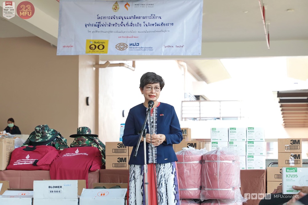 ดร.ปเนต มโนมัยวิบูลย์ ผู้ช่วยอธิการบดี และรักษาการแทนหัวหน้าศูนย์ศึกษาและปฏิบัติการเพื่อลดปัญหาการเกิดไฟป่าหมอกควันในประเทศไทย และในภูมิภาค มหาวิทยาลัยแม่ฟ้าหลวง (มฟล.) เปิดเผยว่า มฟล.ได้จัดตั้งกองทุนเมืองไทยไร้หมอกควัน วัตถุประสงค์เพื่อทำการศึกษาวิจัย และปฏิบัติการลดปัญหาการเกิดไฟป่าหมอกควันในประเทศไทย และในภูมิภาค เบื้องต้นได้จัดเครื่องตรวจวัดค่าฝุ่น P.M. 2.5 เพื่อติดตั้งให้แก่องค์กรปกครองส่วนท้องถิ่นของจังหวัดเชียงราย จำนวน 144 แห่ง ในการติดตามสถานการณ์ค่ามลพิษจากฝุ่นละอองที่เกิดจากการเผาป่าเพื่อนำมาสู่แนวทางการป้องกันได้อย่างเท่าทันและเหมาะสม โดยได้จัดพิธีมอบเครื่องตรวจวัดค่าฝุ่น P.M. 2.5 ให้กับองค์กรปกครองท้องถิ่นและเครือข่าย โดยมี รศ.ดร.ชยาพร วัฒนศิริ อธิการบดี เป็นประธาน เมื่อวันที่ 16 มีนาคม 2564 เวลา 08.30 – 12.00 น. ที่ห้องประชุมประดู่แดง 2 อาคารพลเอก สำเภา ชูศรี (E4) มหาวิทยาลัยแม่ฟ้าหลวง